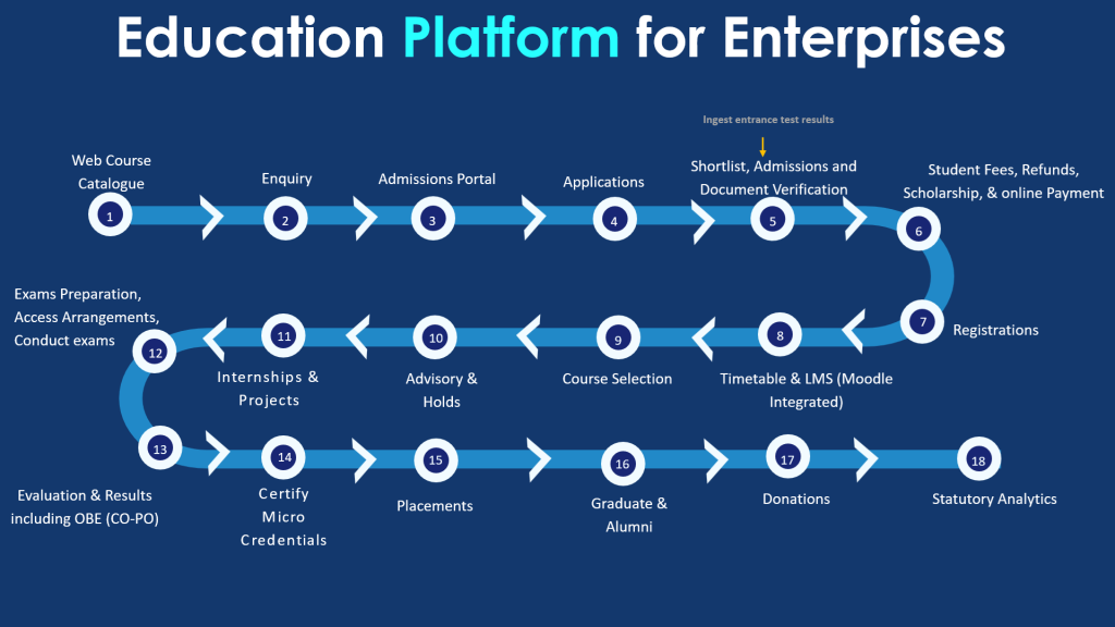 We intend to provide institutions with a single platform to manage and deliver education with the best of the free open-source tools to nurture and guide students with though their lifelong journey of education, employment and alumni relationships.